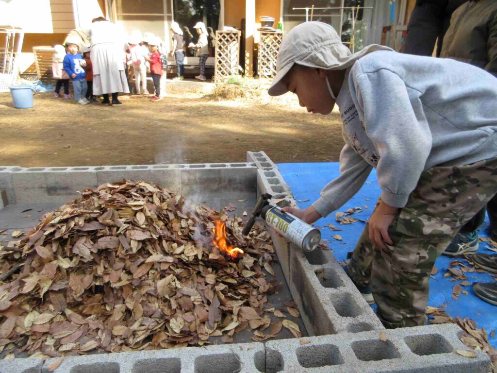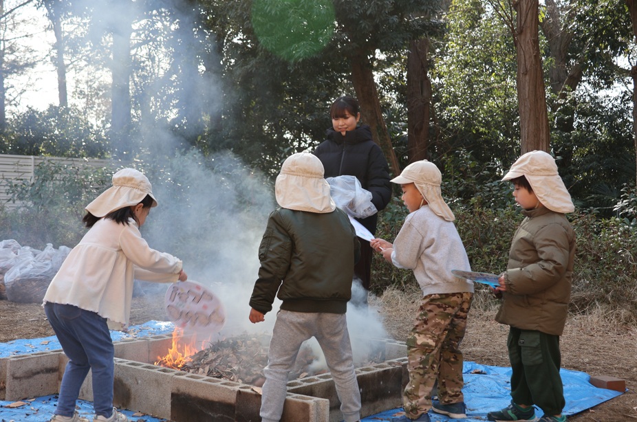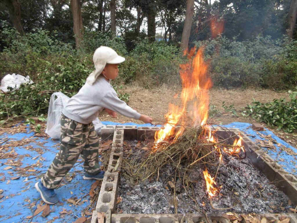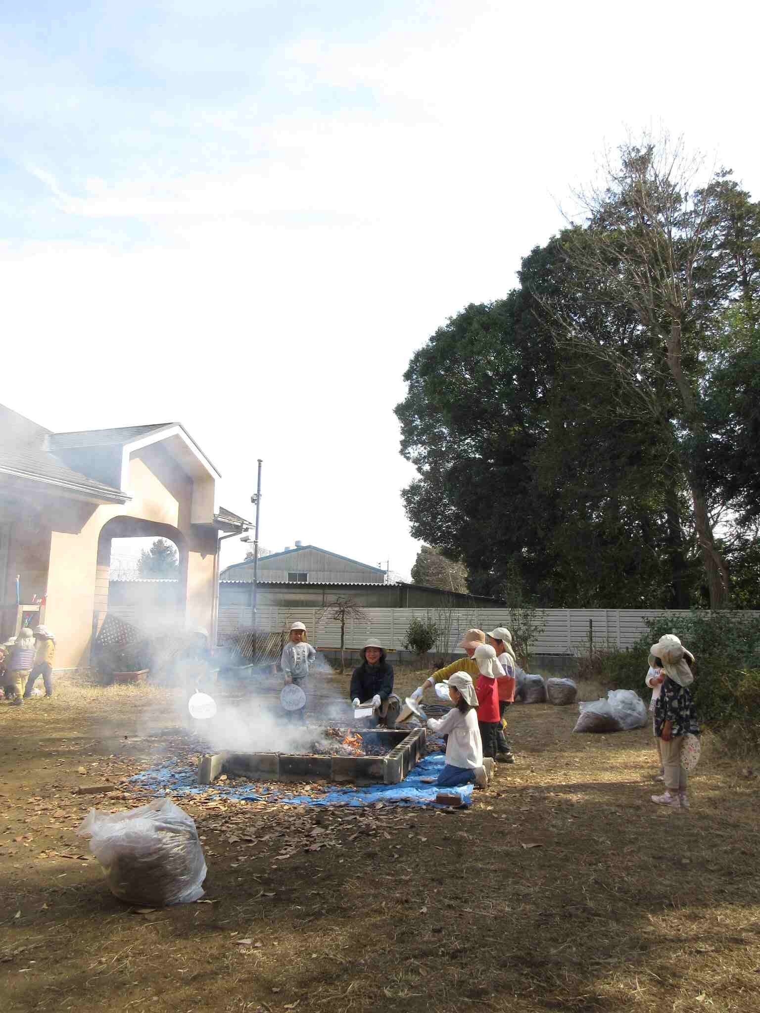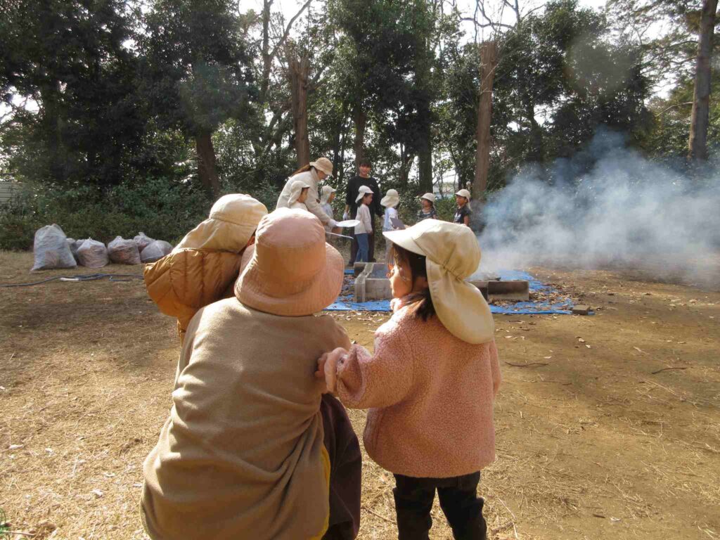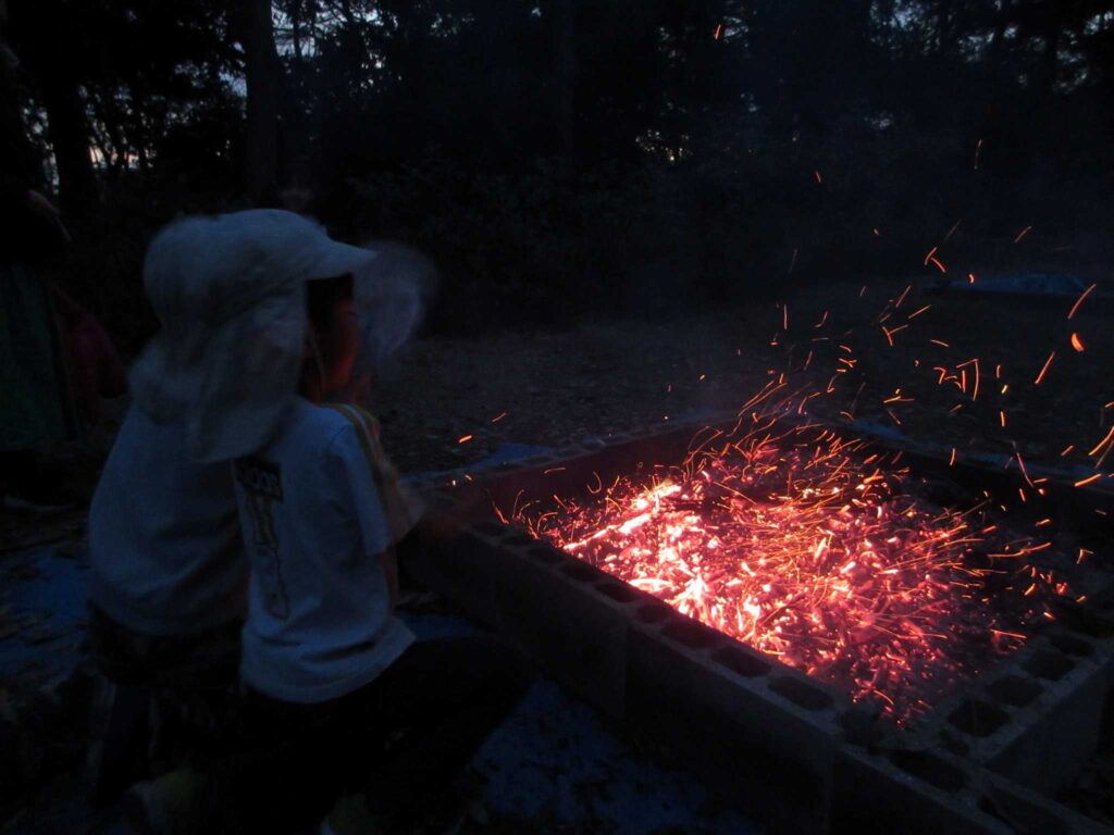 年に一度のたき火を囲んでの時間。お迎えのお母さま・お父さまもたき火を囲んでゆっくりしていかれます。この時間を楽しみにしているご家族も少なくありません。