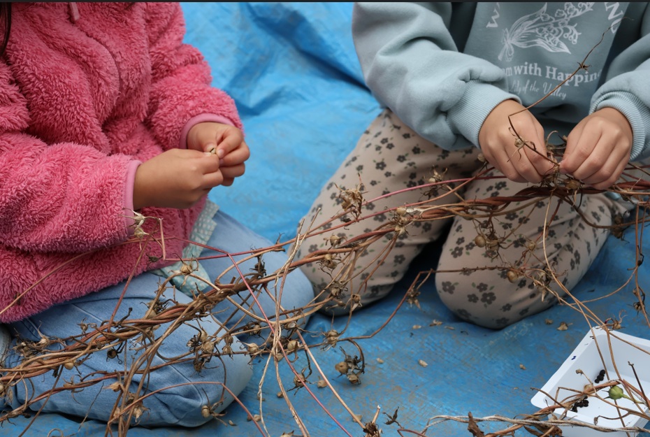 (↑朝顔の種を収穫中)
