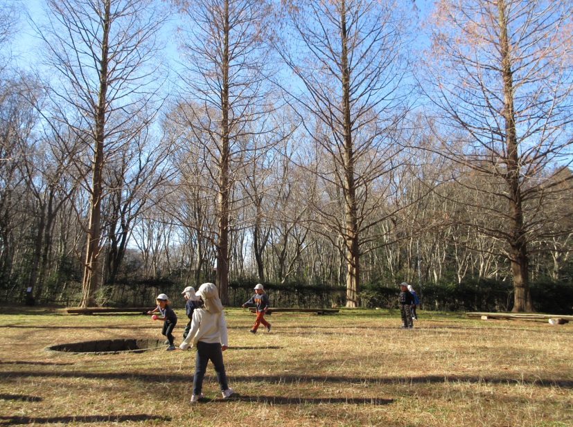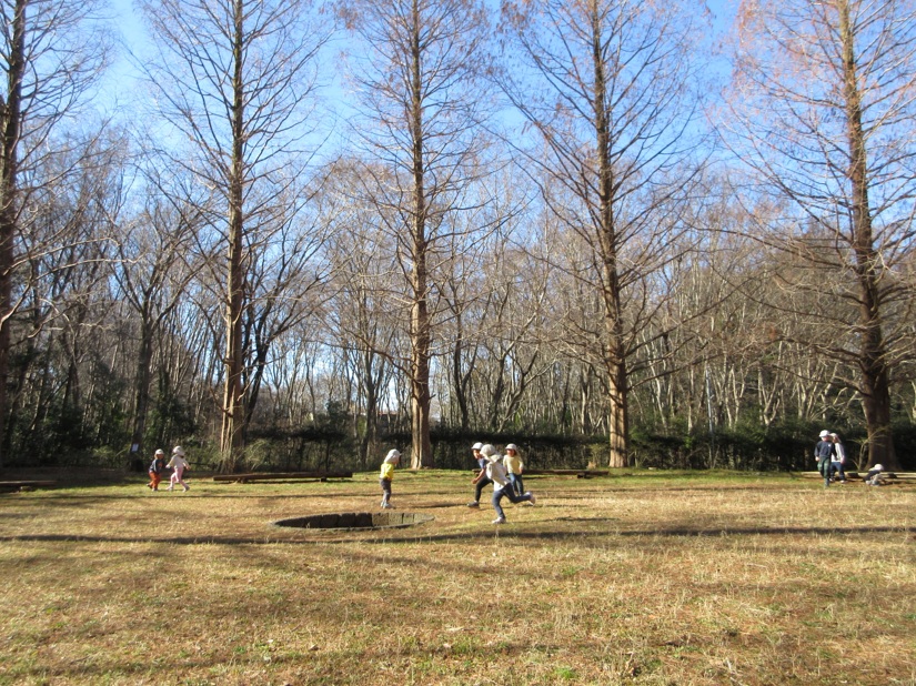 (↑凛と引き締まった空気と青空の下、”かわり鬼”で思いっきり走る子どもたち。)