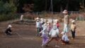 5歳児クラスがホールに合流してくると、Tくん主導で、高ばいぞうきんがけ競争が始まりました。2歳児クラス以上のほぼ全員が参加してわいわいと。
