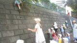 服にセミの抜け殻をつけられて、払うこともできずに固まっているのは、1歳児クラスKちゃん。