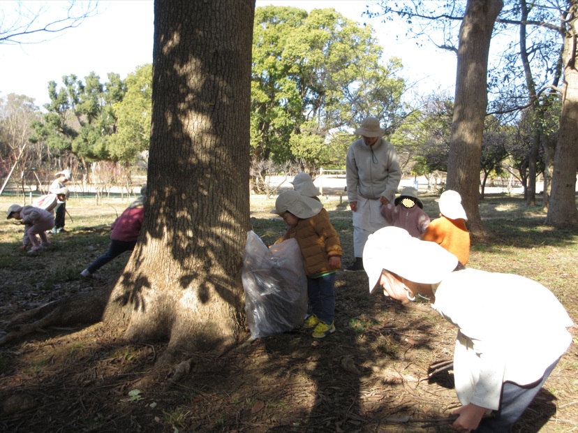 今日は来週予定のやきいも大会用に枝を集めに出かけました。みんなでバスに乗って行田公園へ。