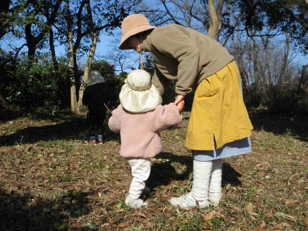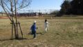 枝を入れるためのビニール袋をじゅん先生が持っているのを見たKくん、「今日は葉っぱ集め? それか草取り?」と推理。