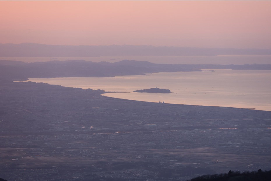 (日曜日早朝の一枚。江の島がしっかり見えています。その奥には三浦半島。その奥には房総半島も。)