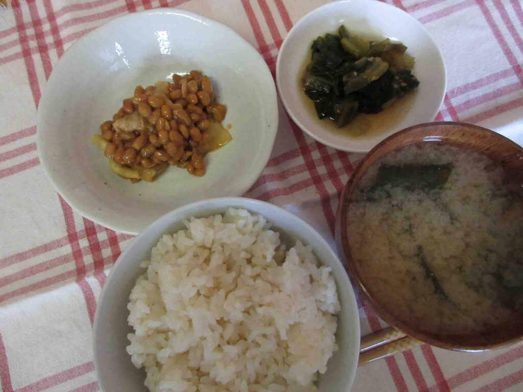 ・五分つきごはん ・納豆と大根のツナ和え ・わかめとおふのおみそ汁 ・小松菜となすの煮物