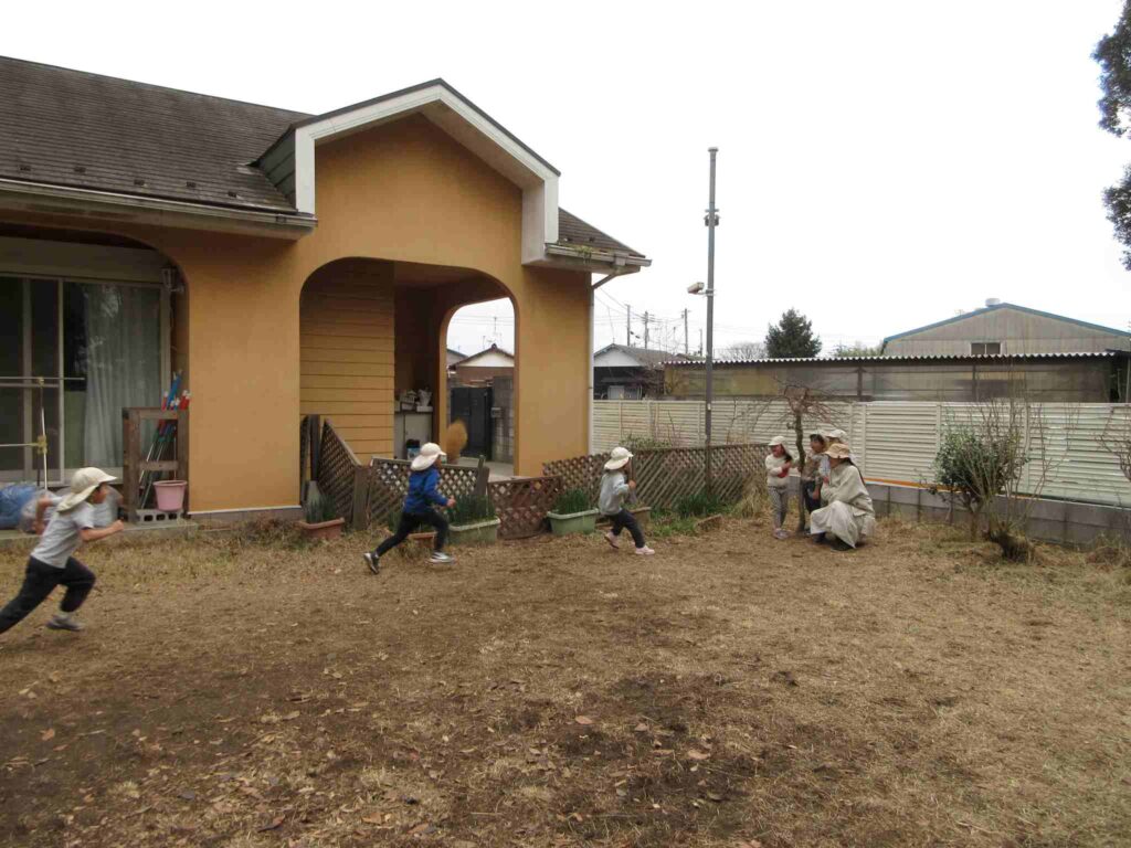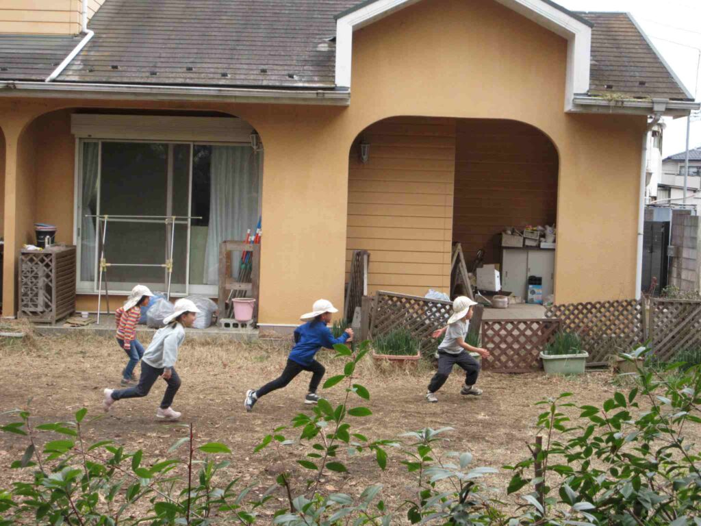 ・鬼にタッチした後、子は一斉に鬼から逃げる。鬼が子を捕まえに行く際の”大股〇〇歩”の数は、子どもたちが決める。歩数決定の勘所が分からないと、ゲームがとてもつまらなくなる。