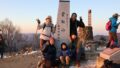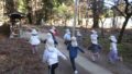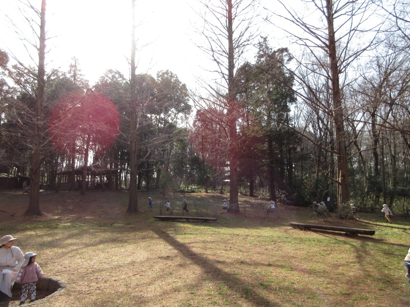 広場に着いて、真ん中窪み部分に1歳児クラス3人が集まり、その他のメンバーはランニング。(上の写真)