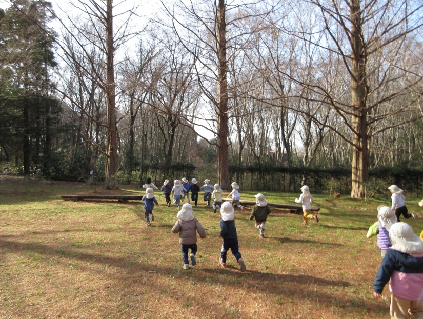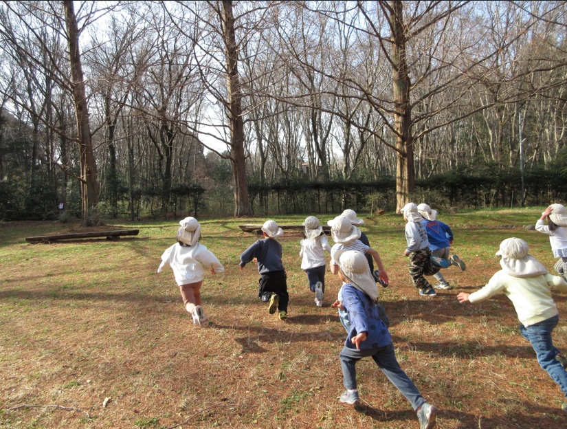 (その後3~5歳児クラスで)代わり鬼。20分近く、一度もだれることなく全員のめり込んで走り切り、なんとも気持ちの良い楽しい時間でした。