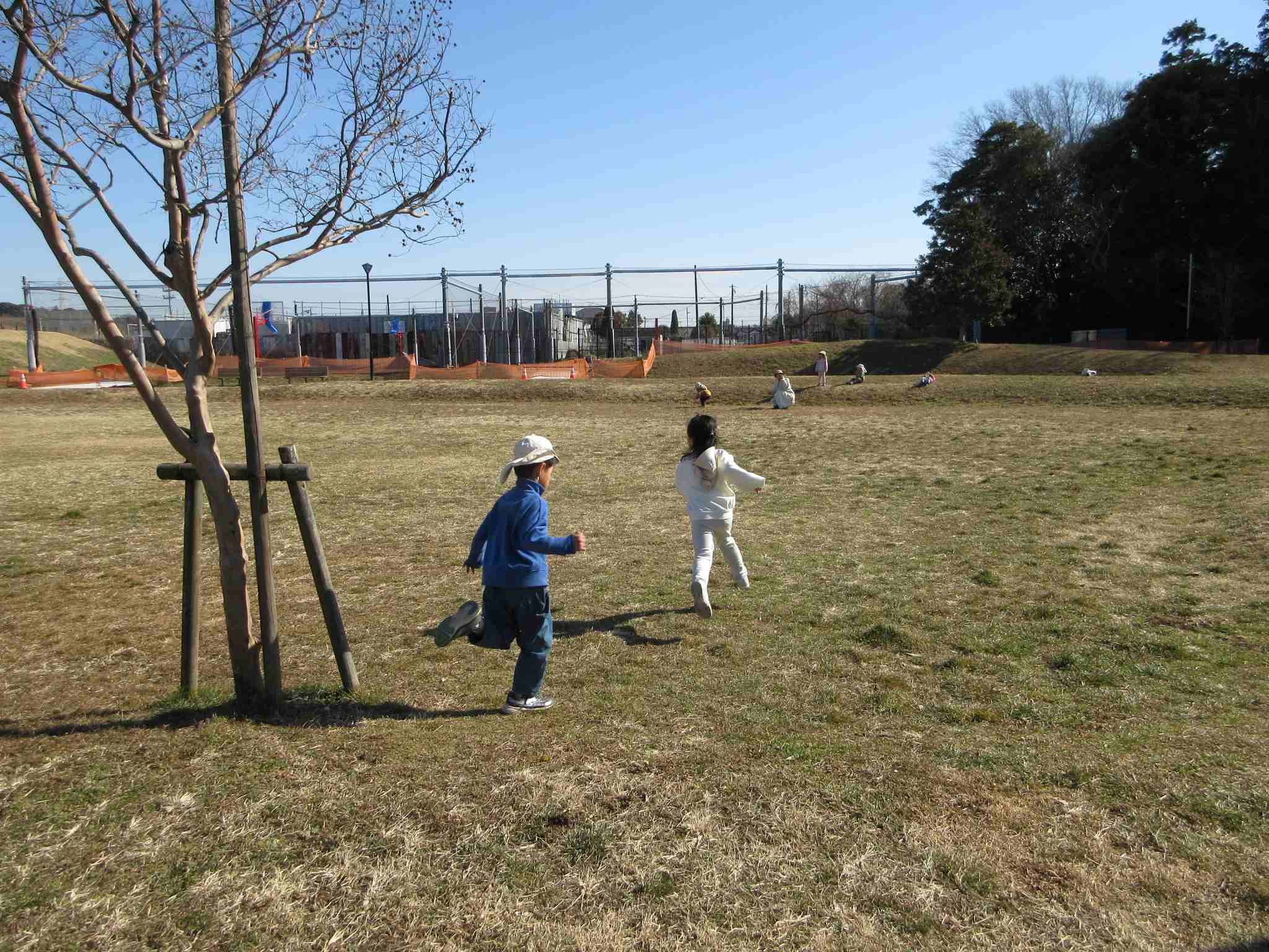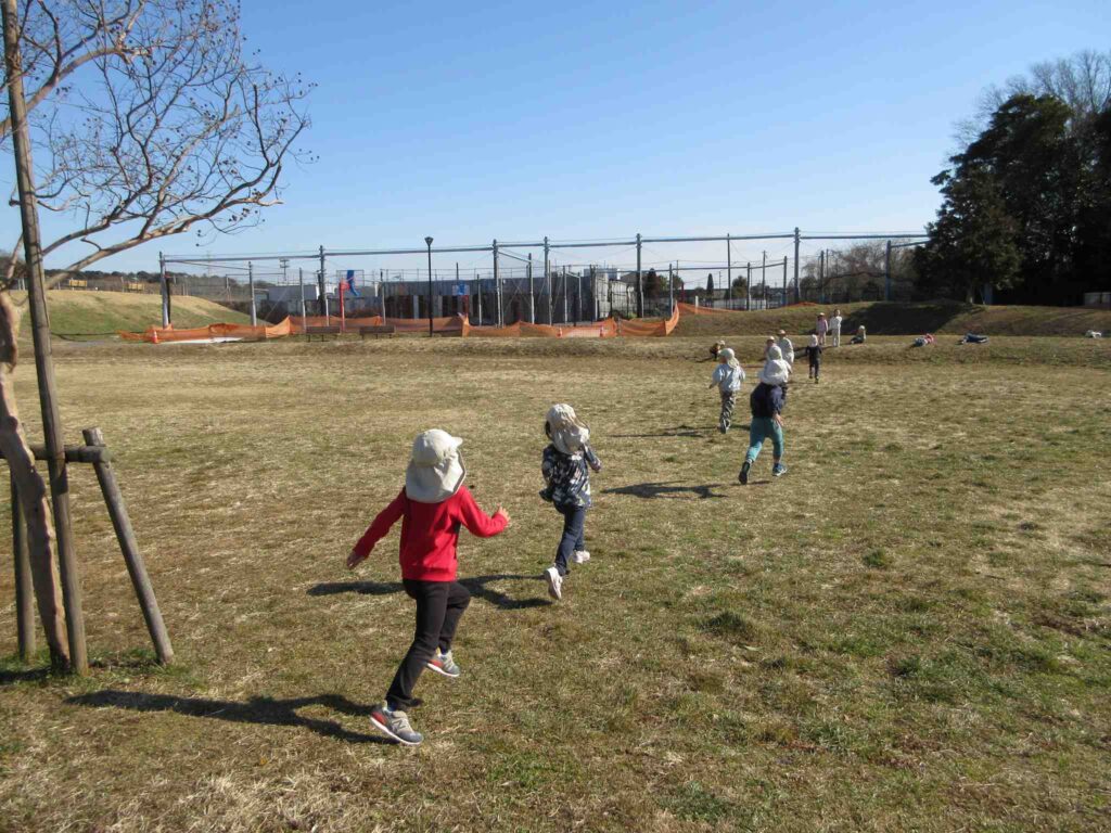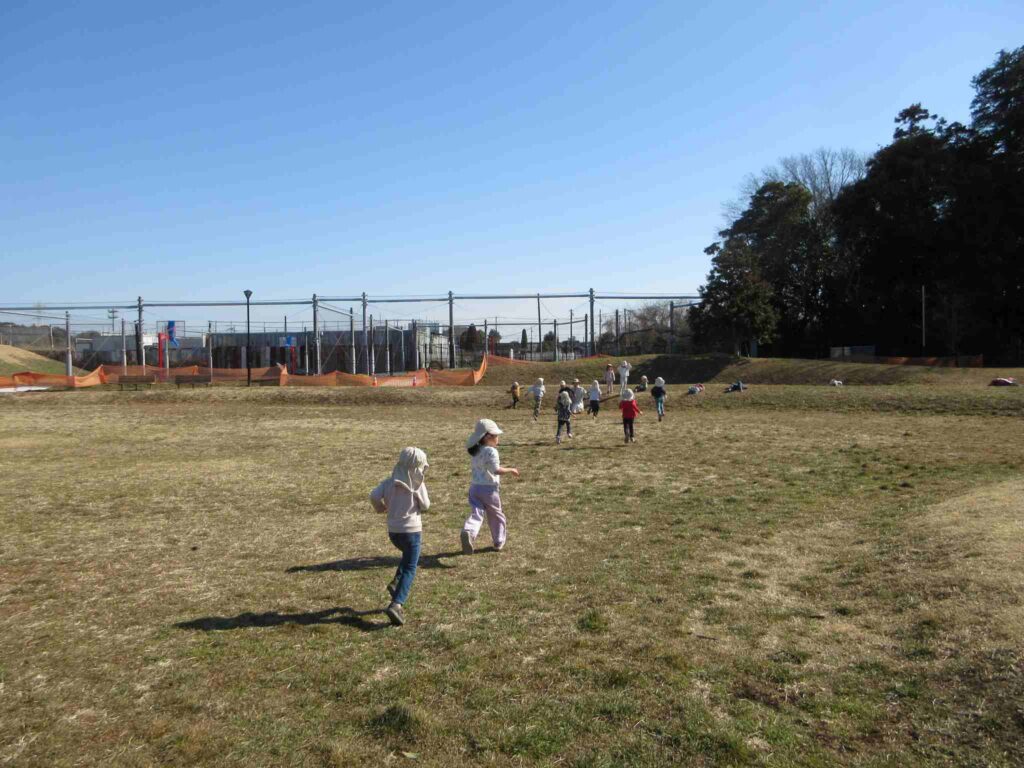 新入園のKくんですが、スポーツパークのことはよく知っていました。マラソンをした広場のすぐ横に山のゾーンがあって、ゴロゴロ転がると楽しいことも知っていました。