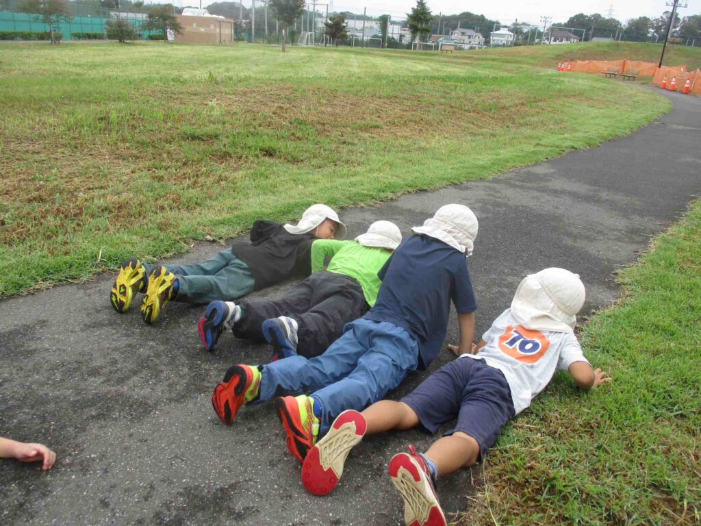 言われなくても毎回全力をだせる5歳児クラスFちゃんは別格として、普通の幼児は、疲れると普通に力をセーブします。なので、Fちゃん(と初マラソンのNちゃん)以外の全員には、佐田から檄がとびます(笑)。