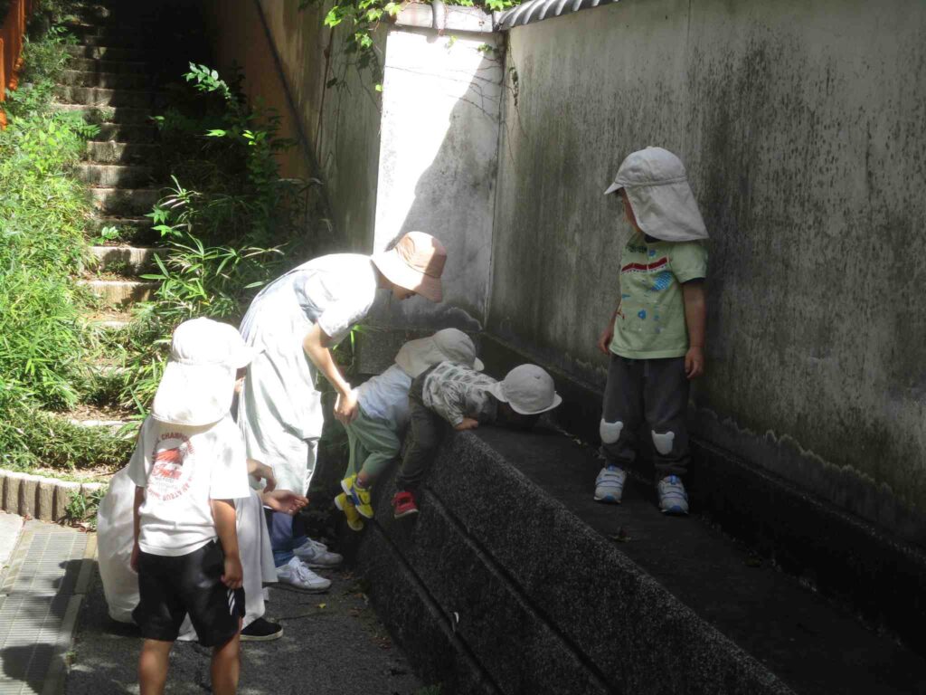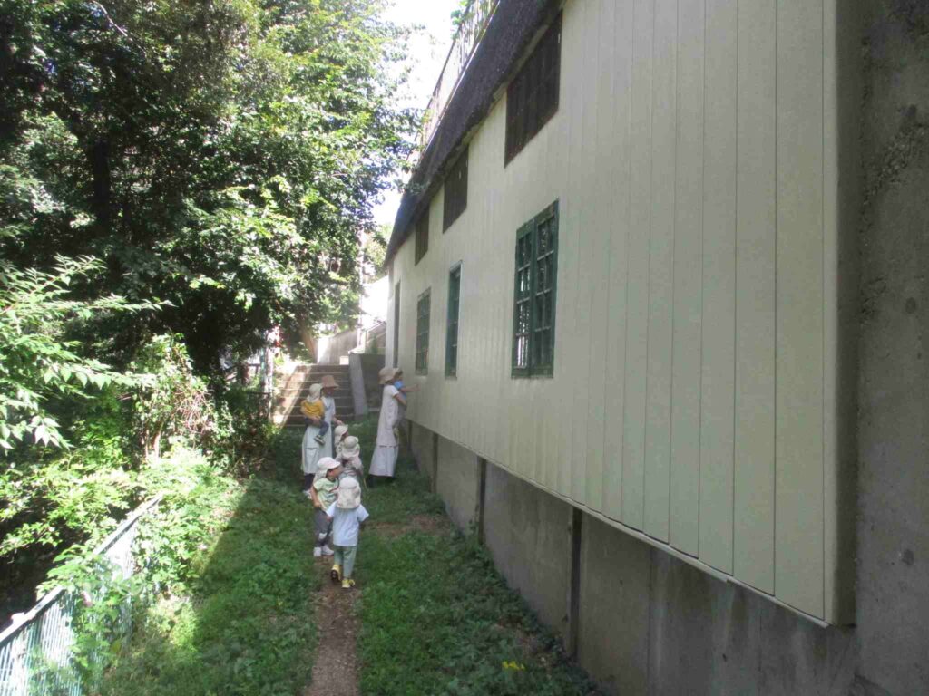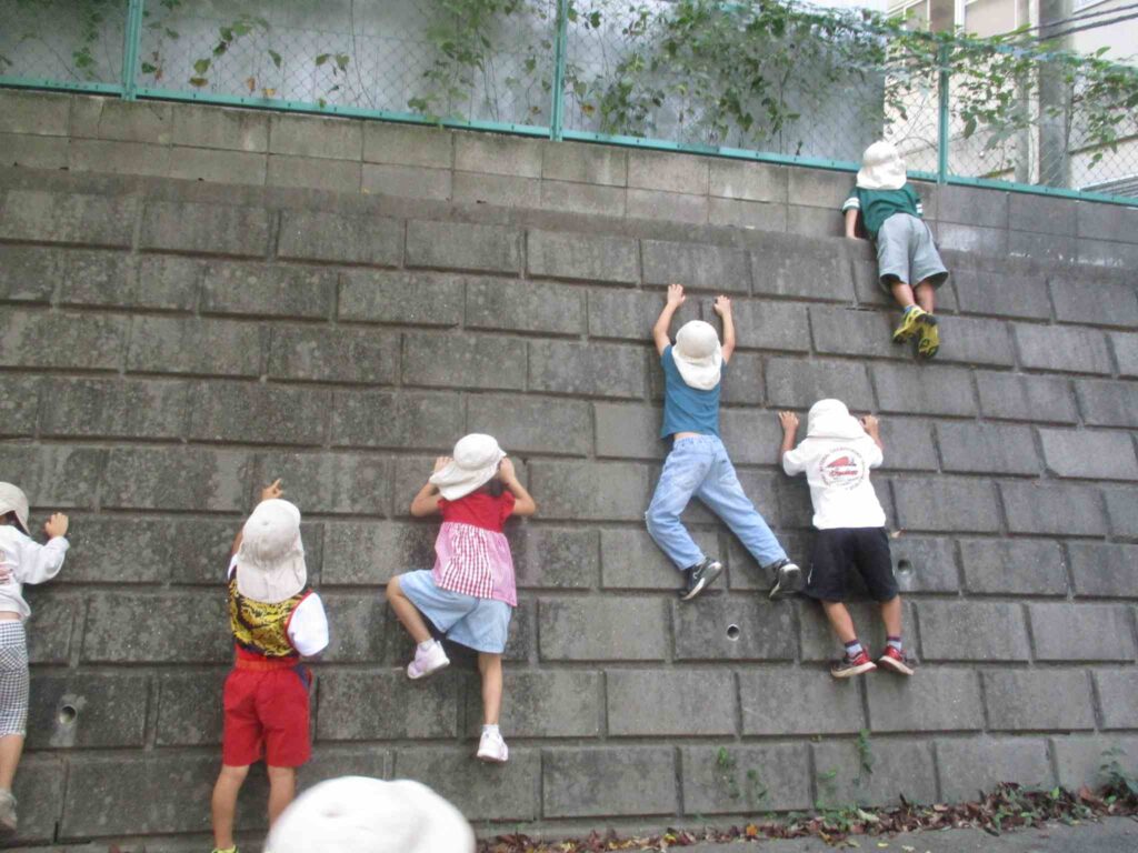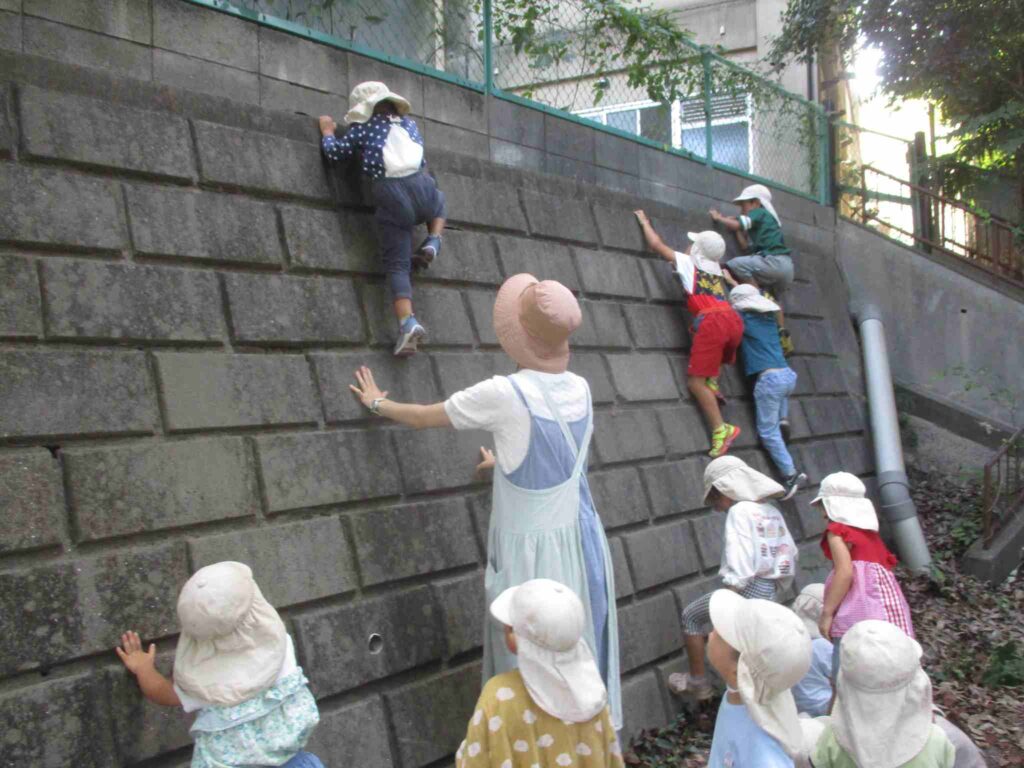そのまま進むと、大柏小の裏門に出ます。その横の壁登りが今日メインの遊びです。