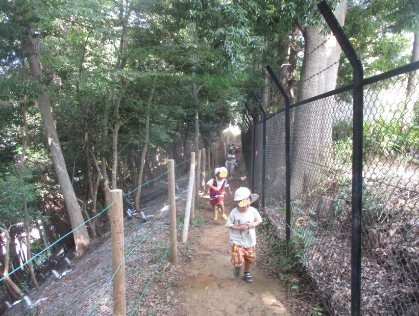 万葉植物園横の未舗装の山道を、上級生を中心にわーっと走っていきます。