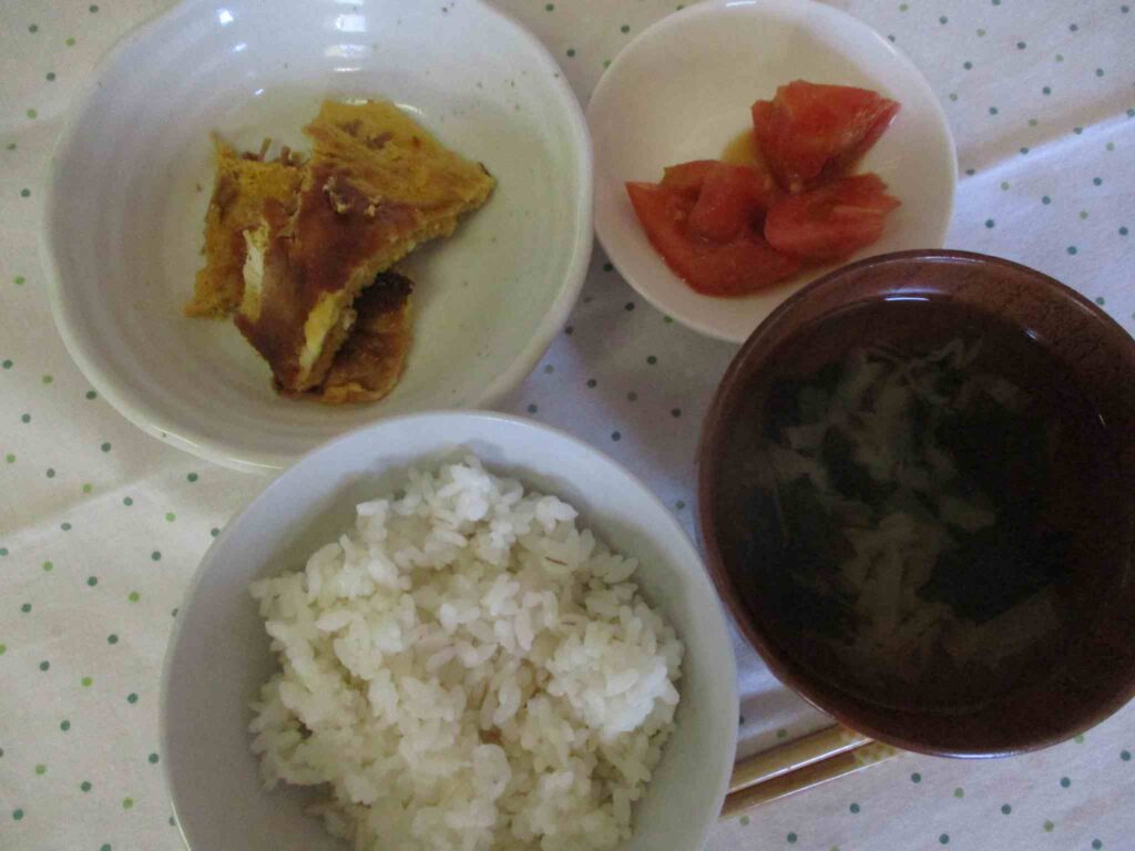 ・麦ごはん ・卵焼き(手作りなめたけ入り) ・キャベツとわかめの和風スープ ・トマトのみそ和え