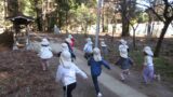 貝柄山公園の上の写真の場所での”飛び石渡り”。先頭を行くのは、5歳児クラスTくん。