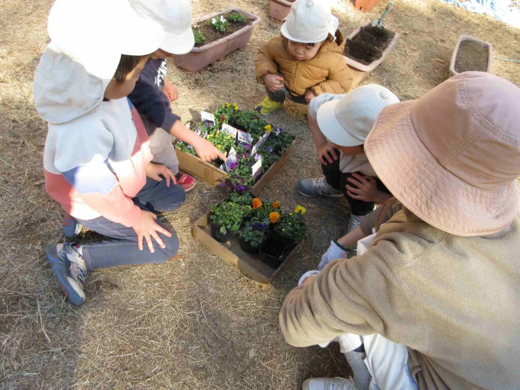 今日はやきいも大会の準備をしましたが、並行してプランターにビオラの苗を植える活動もしました。