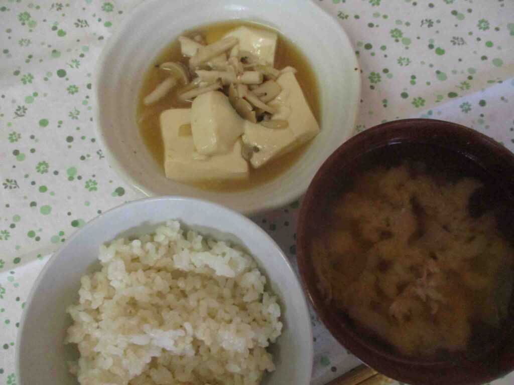 ・五分つきごはん ・豆腐ときのこの煮物 ・豚肉とキャベツのおみそ汁