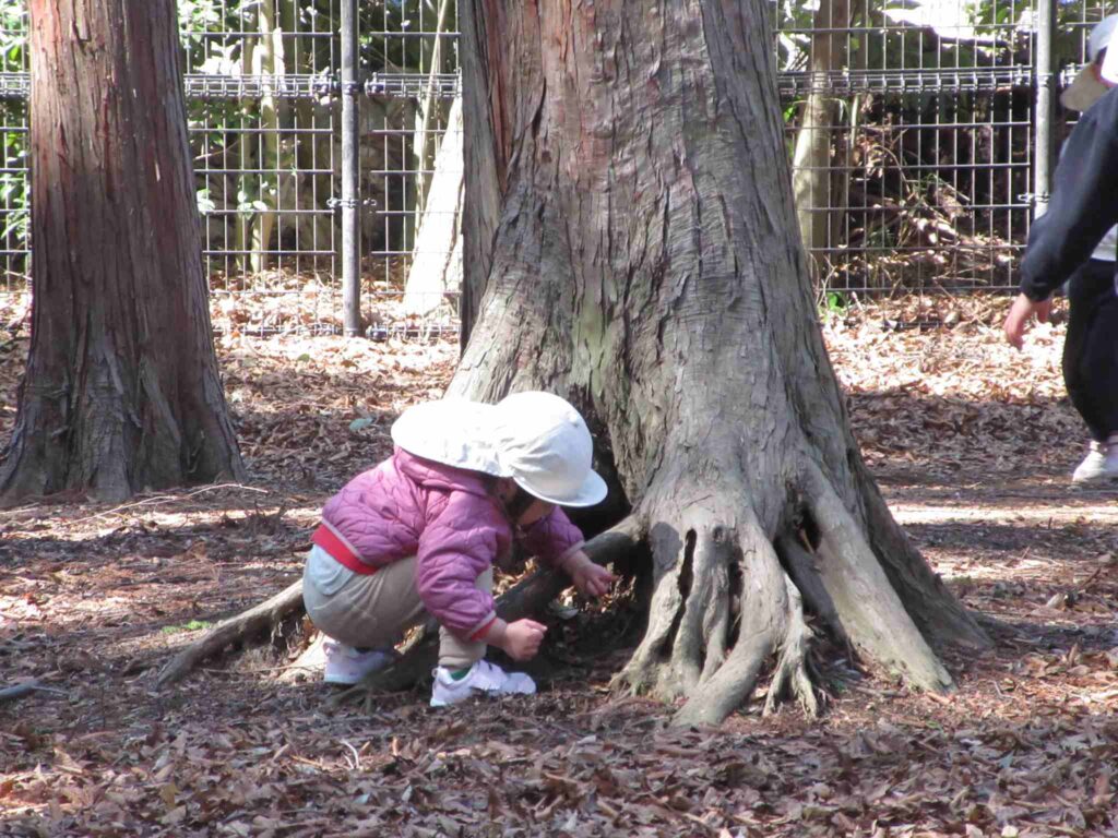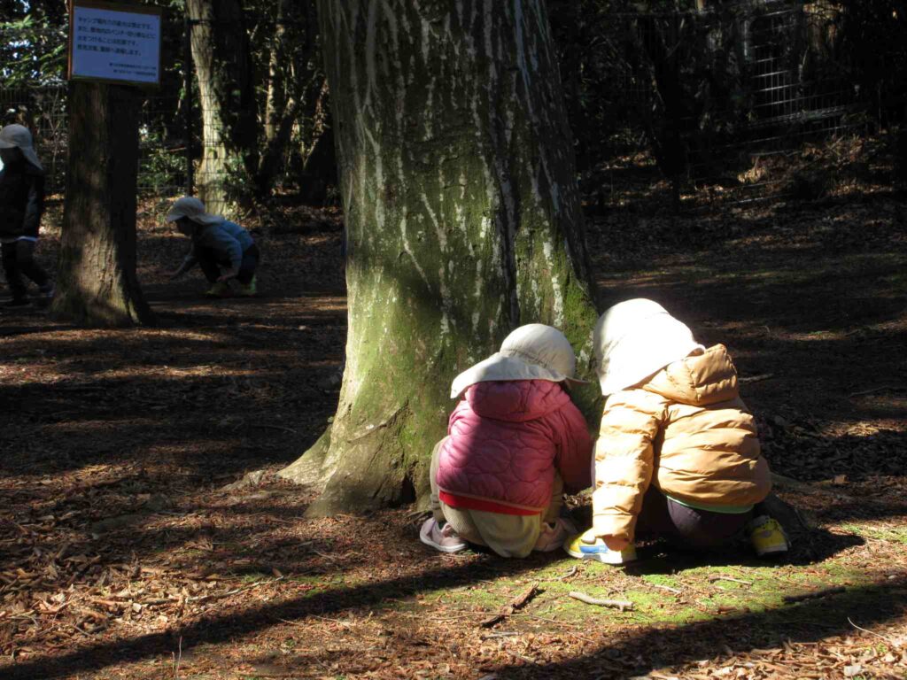 その間、1歳児クラスの2人がしゃがみこんで土や葉っぱをいじる姿も、なかなかよかったです。