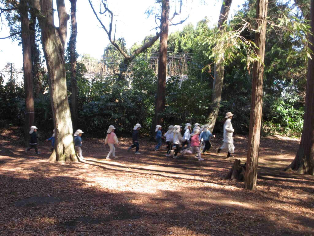 先頭のM先生にぴったりとついて走る上級生、なかなかやる気ありますが、最後尾の1歳児クラスKちゃん・Aちゃんもやる気があります。