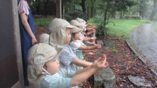 活動の様子メイン 今シーズン一番の豪雨を浴びて みなさまいつもありがとうございます。 (↑豪雨を感じるひとこま。東屋の屋根から落ちてくる雨粒を両手で受け止めて。行田公園にて。) 《ミニ入園説明会(要予約)》 2025年9月27日(土)の9時半から、開催いたします。 詳しくはこちらをご覧く... 2025.09.05 活動の様子メイン